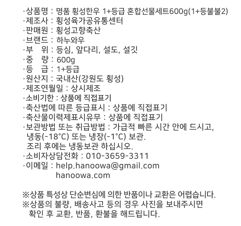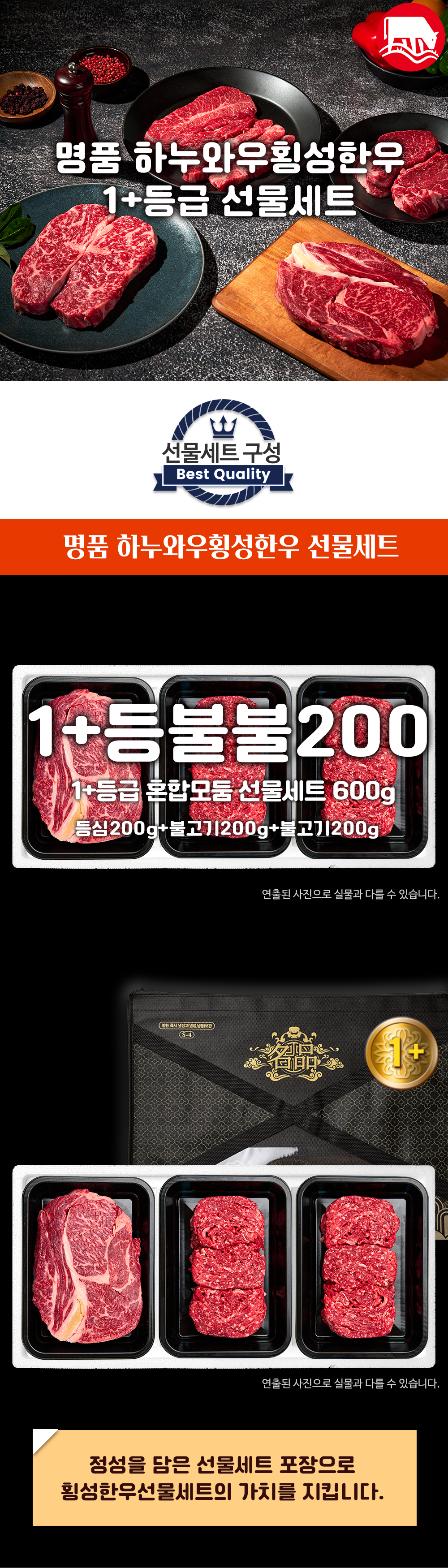 [하누와우]명품 횡성한우 1+등급 혼합선물세트600g(1+등/불/불2)