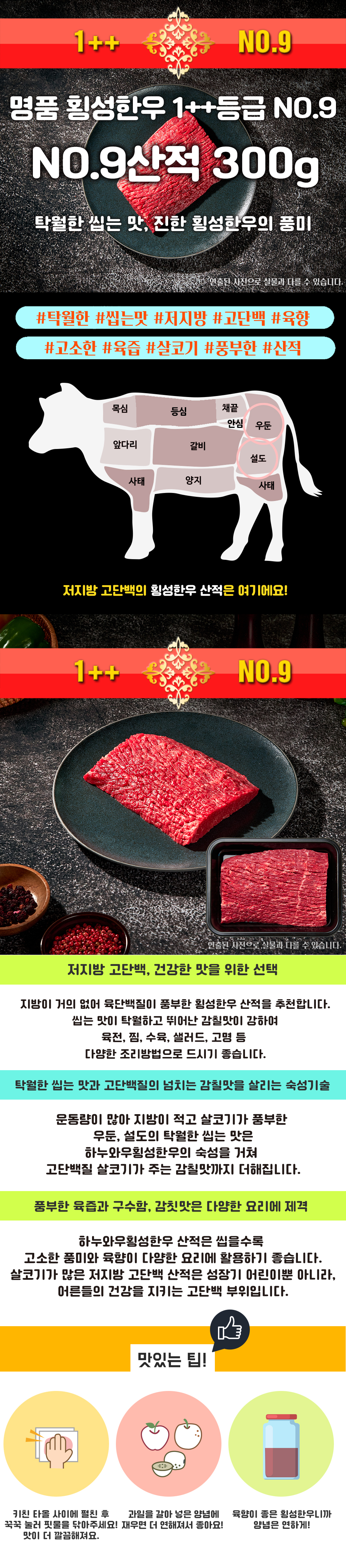 횡성한우 1++등급(NO.9) 900g | 국거리300g+불고기300g+산적300g