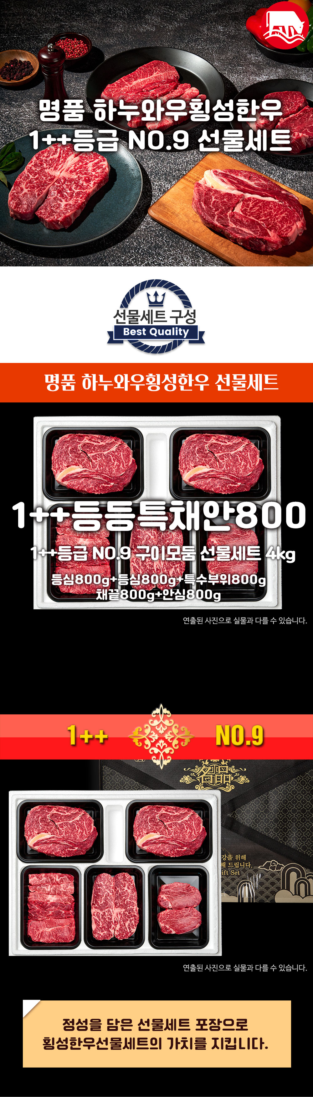 횡성한우 1++등급(NO.9) 4kg | 등심800g+등심800g+특수부위800g+채끝800g+안심800g