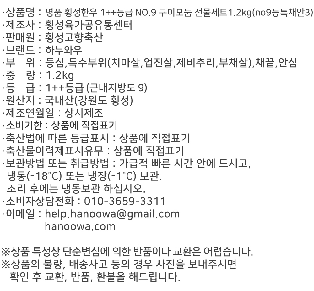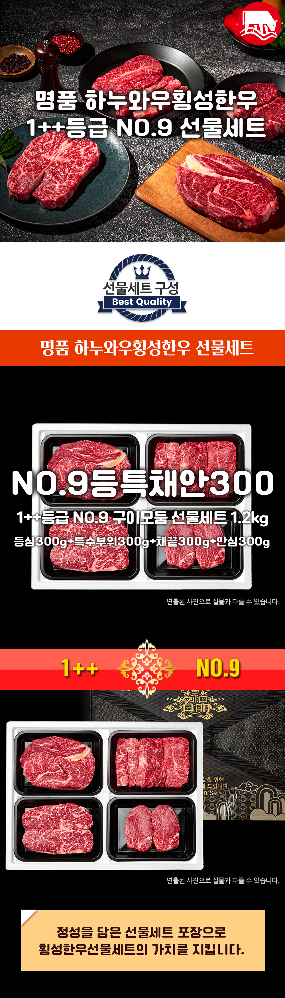 횡성한우 1++등급(NO.9) 1.2kg | 등심300g+특수부위300g+채끝300g+안심300g