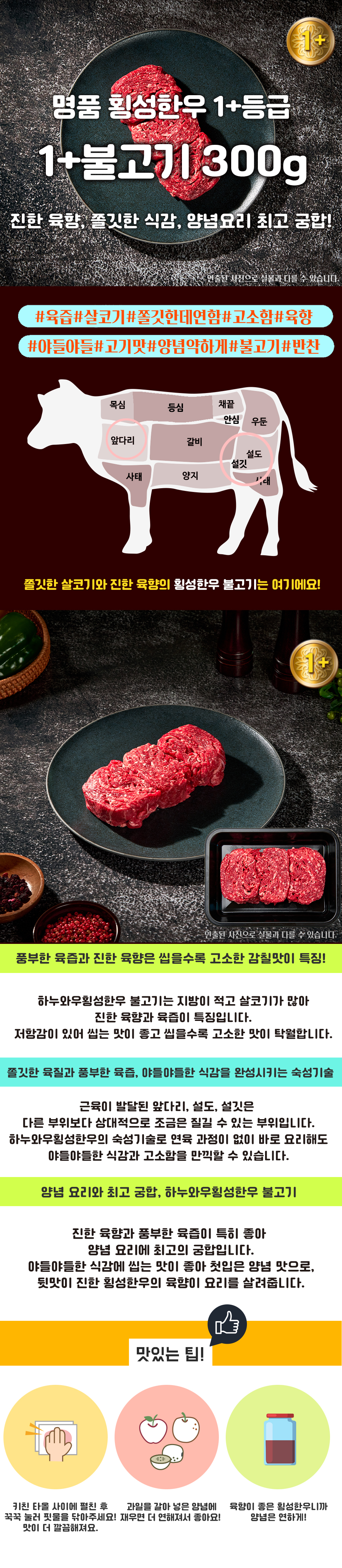 횡성한우 1+등급 1.2kg | 등심300g+등심300g+불고기300g+국거리300g