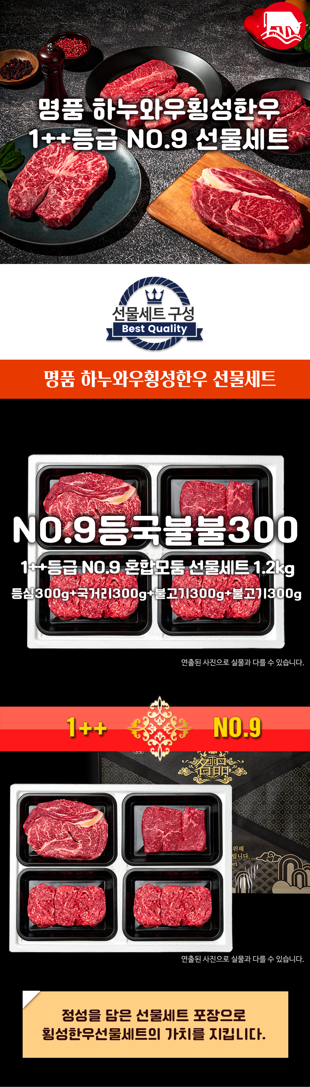 횡성한우 1++등급(NO.9) 1.2kg | 등심300g+국거리300g+불고기300g+불고기300g
