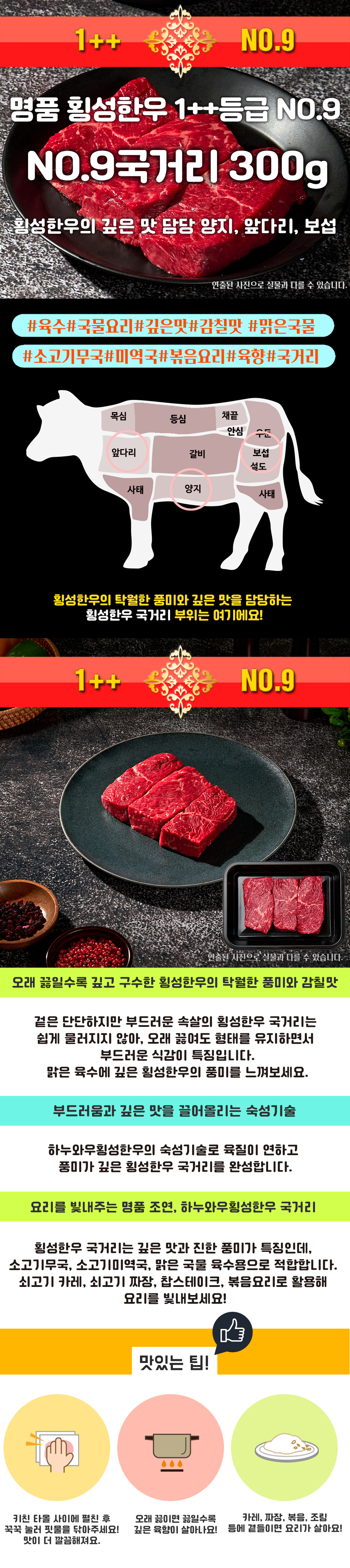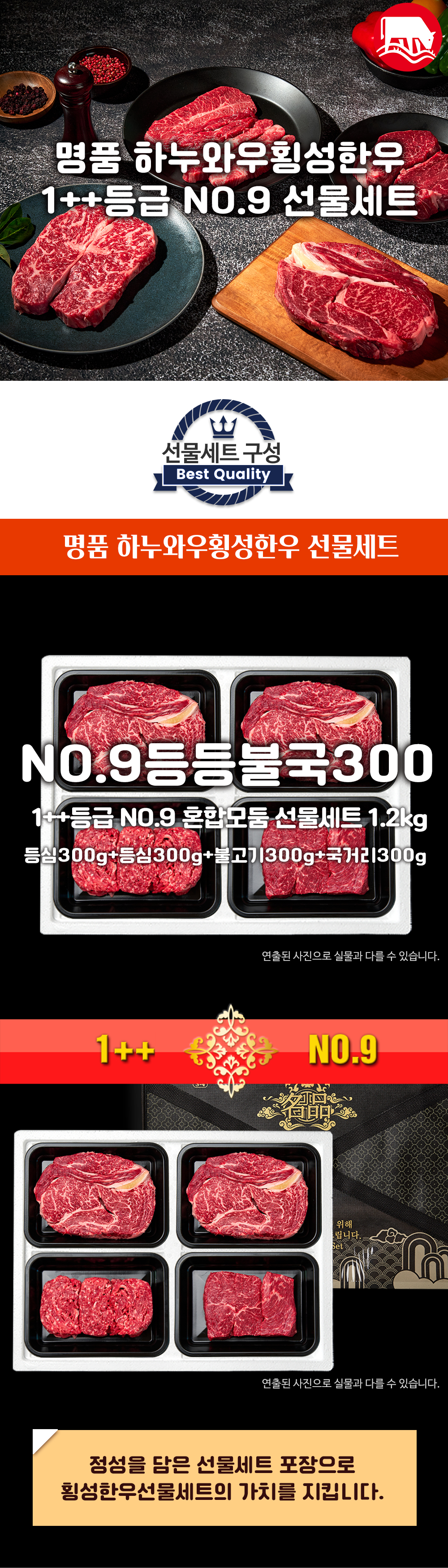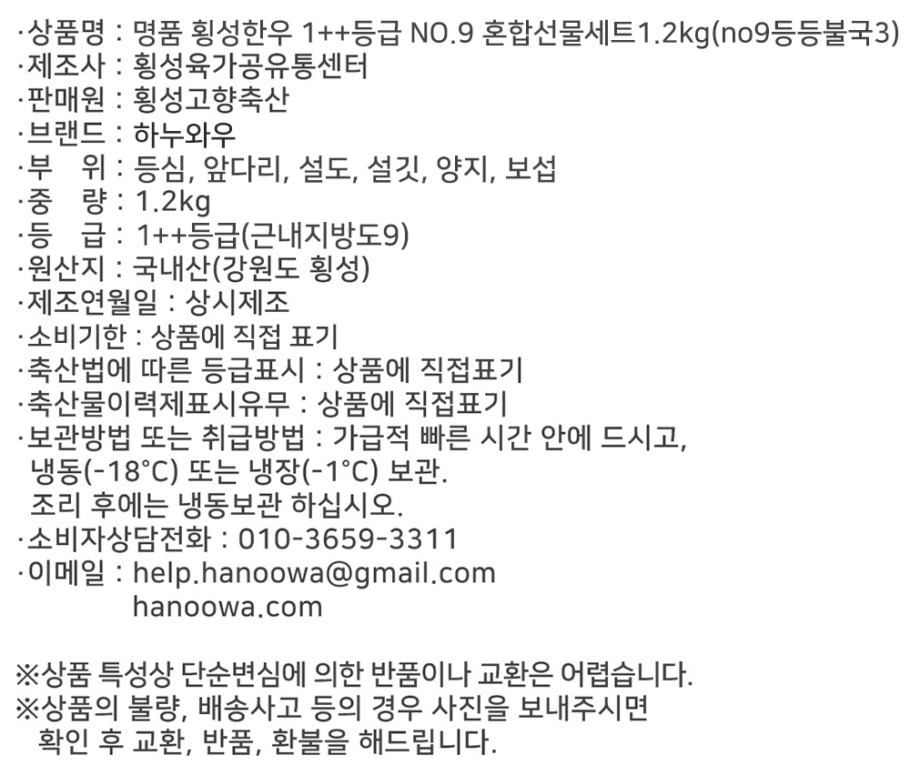 [하누와우]명품 횡성한우 NO.9등급 VIP 혼합선물세트1.2kg(no9등/등/불/국3)