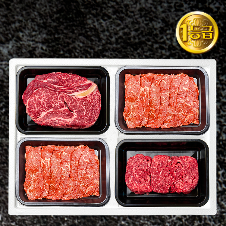 횡성한우 1등급 1.2kg | 등심300g+보섭3초구이300g+보섭3초구이300g+불고기300g