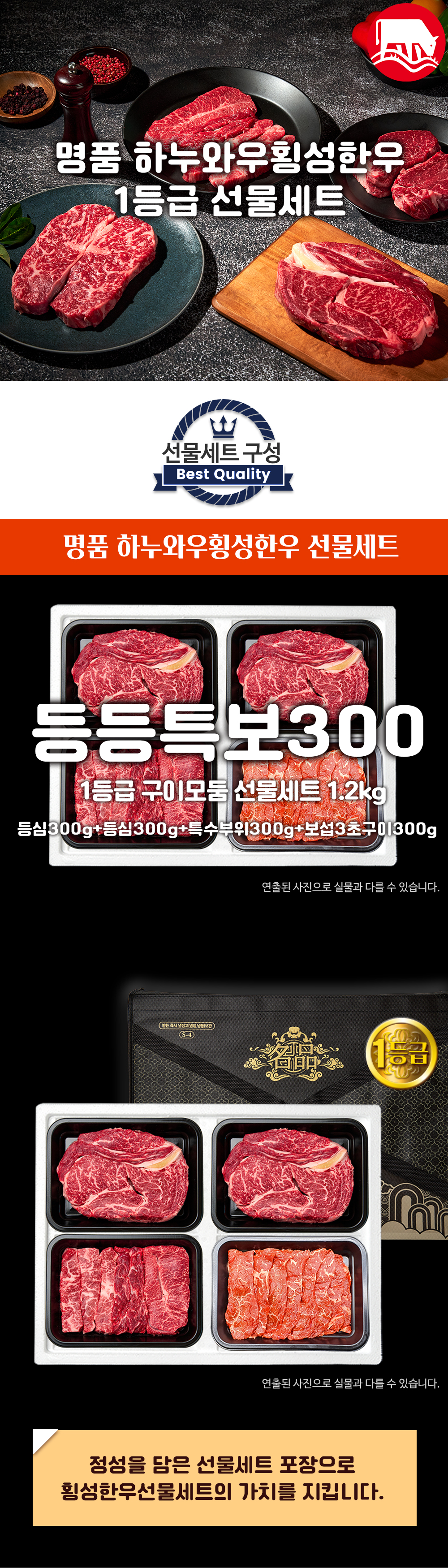 횡성한우 1등급 1.2kg | 등심300g+등심300g+특수부위300g+보섭3초구이 300g