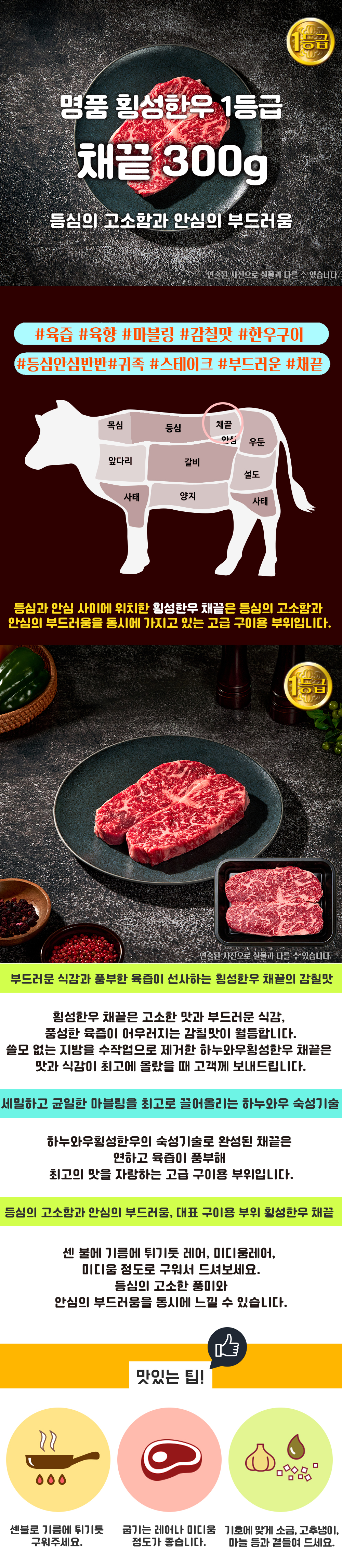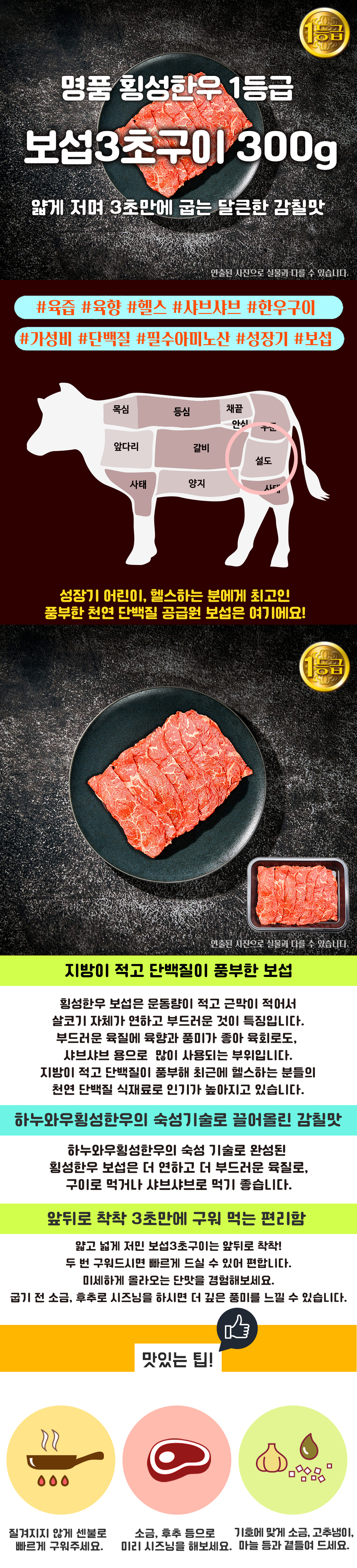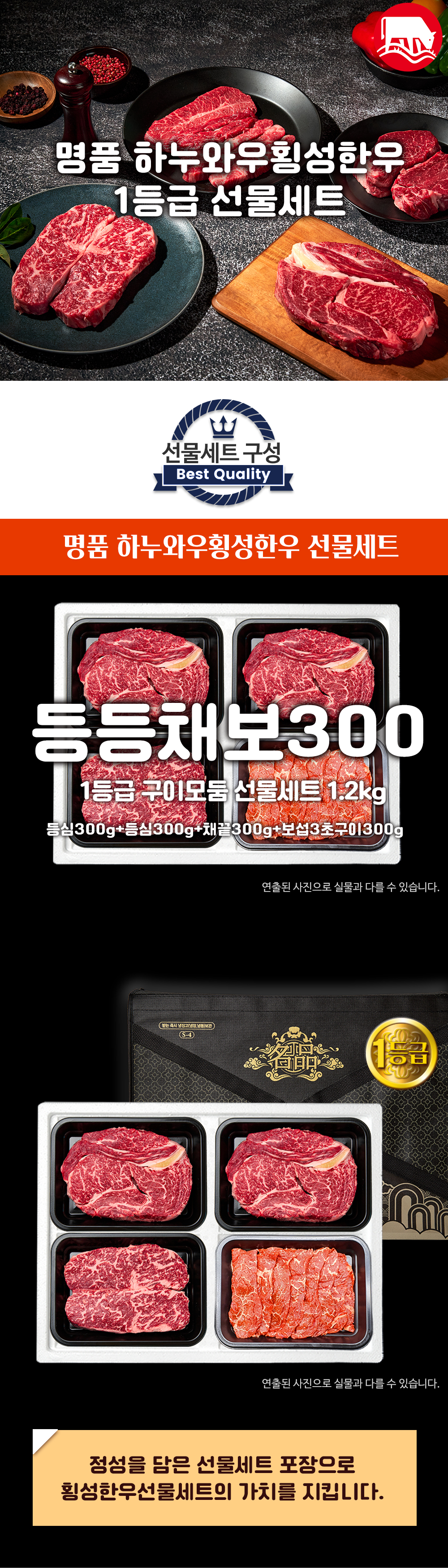 횡성한우 1등급 1.2kg | 등심300g+등심300g+채끝300g+보섭3초구이 300g