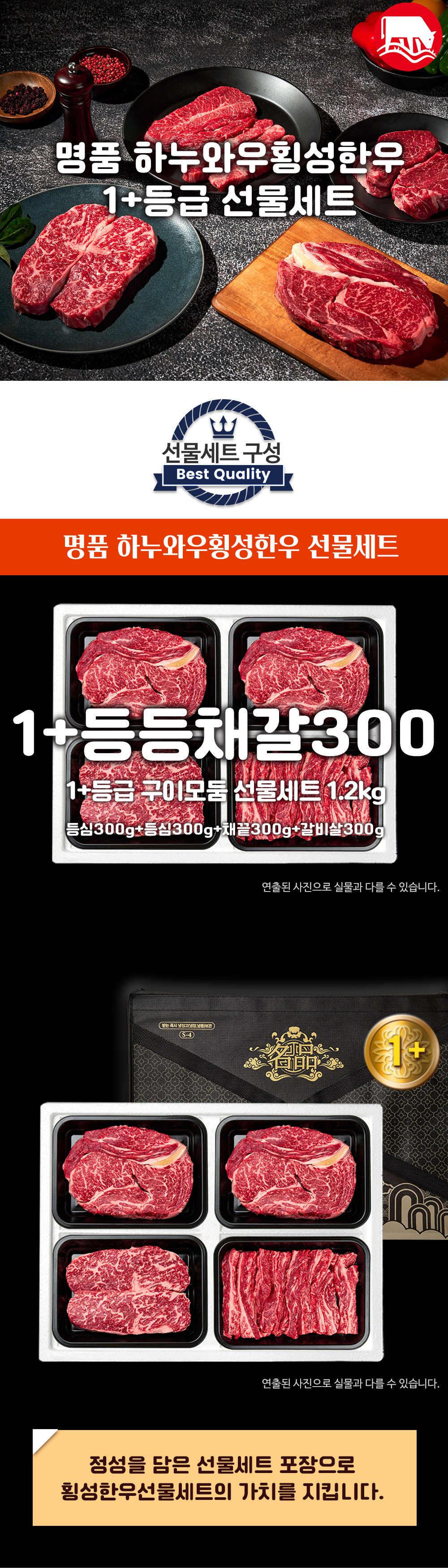 [하누와우]명품 횡성한우 1+등급 구이선물세트1.2kg(1+등/등/채/갈3)