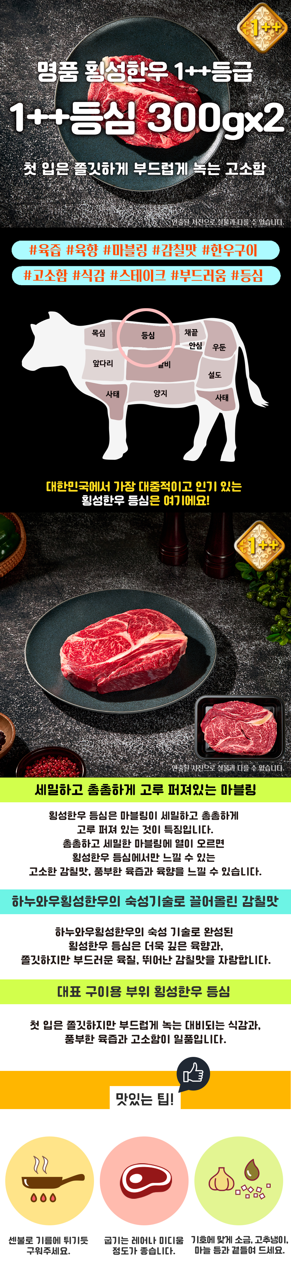 횡성한우 1++등급 900g | 등심300g+등심300g+보섭3초구이300g