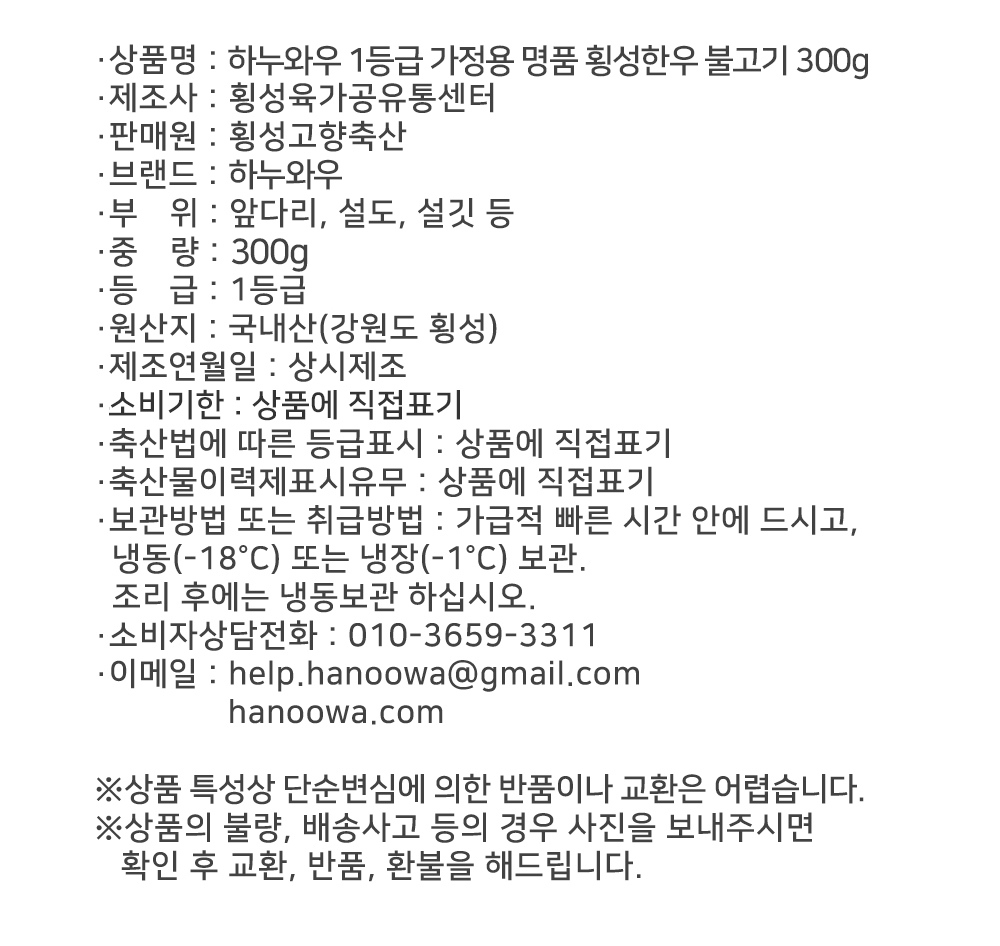 횡성한우 1등급 300g | 불고기300g