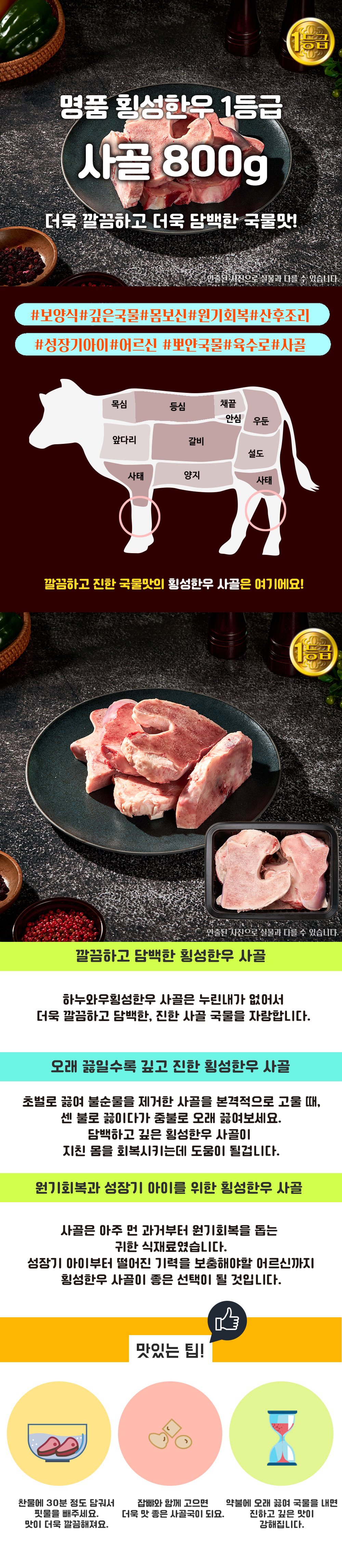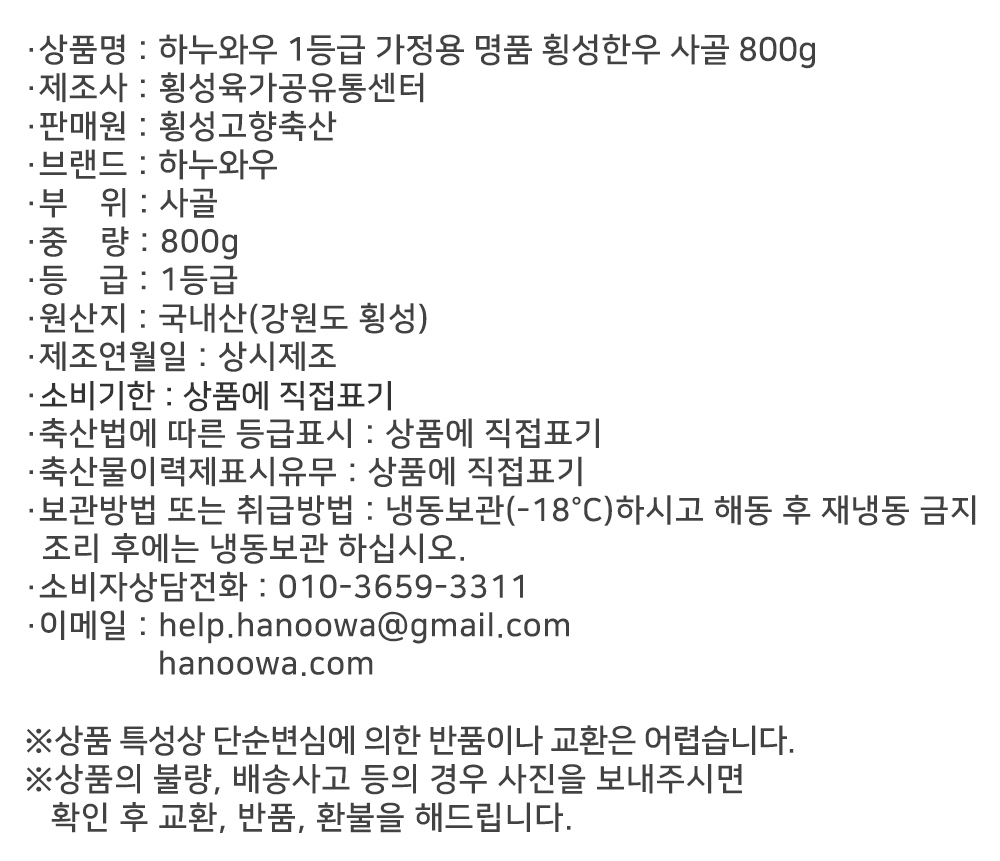 [하누와우]명품 횡성한우 1등급 가정용 사골 800g